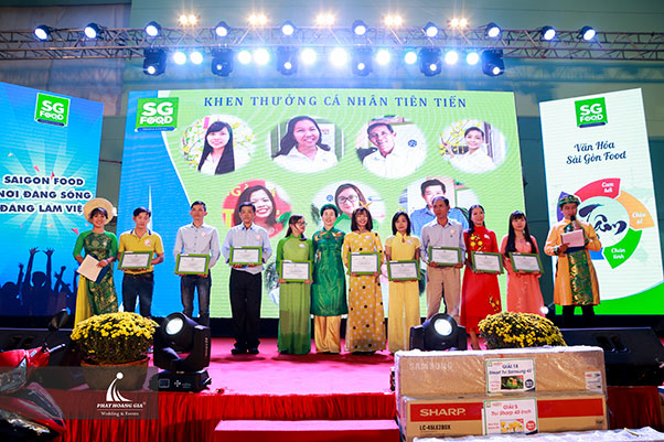 Tại buổi lễ, các lãnh đạo của Công ty đã trao những phần thưởng đầy ý nghĩa cho các cá nhân đạt thành tích xuất sắc – tiên tiến trong năm 2017. Đây là những gương mặt tiêu biểu, đã đóng góp công sức, lòng nhiệt huyết của mình, góp phần xây dựng Sài Gòn Food vững mạnh.